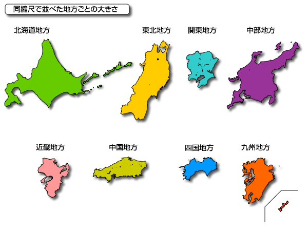 地方別に見ると、北海道地方の大きさがよくわかります。